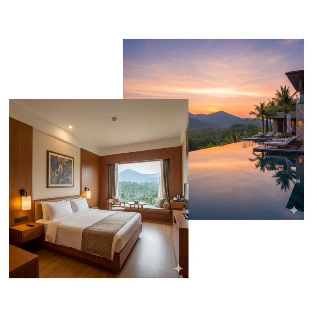 Located just 76 kilometers from the coastal city of Kozhikode, this scenic hill station is known for its rich biodiversity and pleasant climate throughout the year. The forested hills of Wayanad seamlessly extend into Mudumalai in Tamil Nadu and Bandipur in Karnataka, creating a vast natural corridor where wildlife thrives freely in its natural habitat. Every corner of Wayanad invites you to slow down, breathe deeply, and reconnect with the beauty of the outdoors.Amidst this tranquil setting, luxury hotels in Wayanad redefine comfort and elegance. Designed to blend seamlessly with nature, these premium retreats offer breathtaking views, refined interiors, and warm hospitality. Guests can enjoy rejuvenating spa therapies, curated dining experiences, and carefully crafted activities that enhance their connection with the surroundings